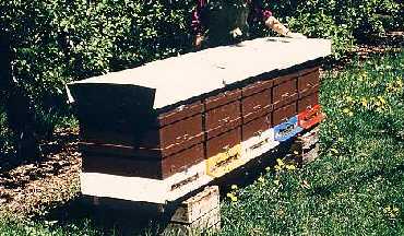 Neuerdings werden auch große Waben (30 x 37cm) für den Brutraum mit besten Erfolg eingesetzt. Als Honigräume werden über Absperrgitter die o.g. Flachzargen verwendet. Die Einwinterung erfolgt mit einer Zarge Großwaben plus einer Flachzarge, die als Winterfutter dient. Anfang März wird die Flachzarge unter der Großwabe gesetzt und das Volk auf 7-8 Waben durch ein Schied eingeengt. Die älteren Waben kommen außerhalb des Schiedes und werden von den Bienen entleert, sollten sich noch Honigkränze befinden. Dies dient gleichzeitig einer Reizfütterung. Vor der Obstblüte werden sie entfernt und durch Mittelwände ersetzt.